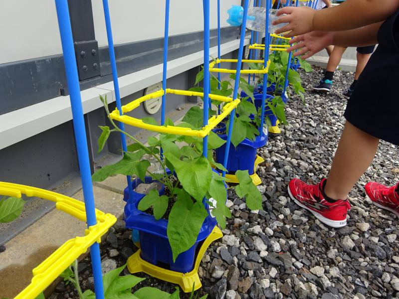 「先生!花が咲いています!」「先生!実がなっています!」「先生、背が伸びています!」「先生、実がチクチクします!」と、いたるところから気づきがたくさん聞かれました。