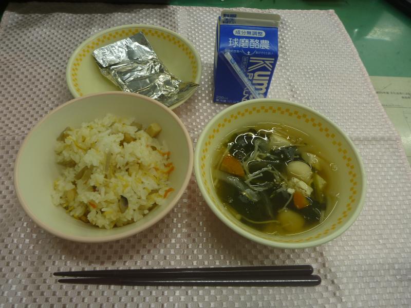 今日の給食は、ちらしずし、つみれ汁、たらのみそマヨホイル、牛乳でした。