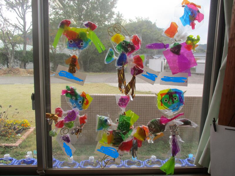 出来上がった作品は教室の窓に飾りました。