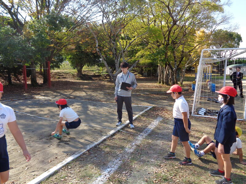 体育では、大学から先生が見に来られていました。幅跳びのリズムを上手に教えていました。