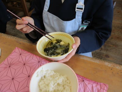 子ども達は、給食時に正しい食器の持ち方を確認し挑戦しています。
