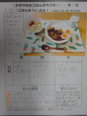 次回は、2月の朝食(味噌汁)作ろうデーになります。豪華でなくて構いません。ごはんと味噌汁と納豆など無理なくできるものでいいです。そのうち、お子さんに「ごはんつくるよ!」なんて言ってもらえるようになると嬉しいですね。