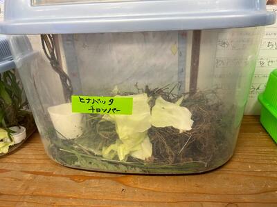 今週から、グループごとに虫かごで育ててみようということで、住みかを作って観察をしています。