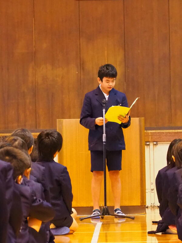 1~6年生まで、代表の児童が2学期にがんばったこと・3学期の目標を発表しました。