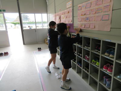 今朝、校内を回ってみたら、いたるところに先生たちの温かい心配りがありました。