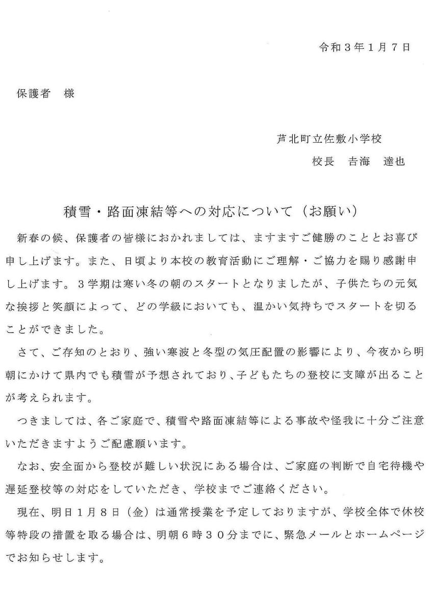 新年の初日、厳冬の朝、子供たちを迎えたのは、「あけましておめでとう」の掲示でした。