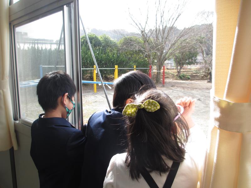 休み時間のたびに、降っている雪を見ようと窓のところに行く子ども達。
