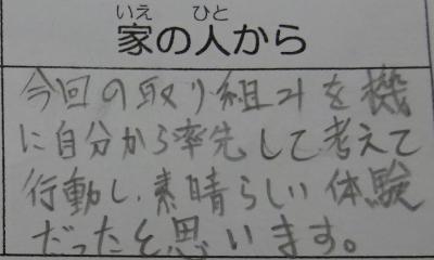 2月の朝食(味噌汁)作ろうデーの保護者の方の感想です。忙しいところ大変お世話になっています。読ませていただいてとても温かい気持ちになりました。子どもたちが食への関心を深めてくれているようで嬉しく思っているところです。
