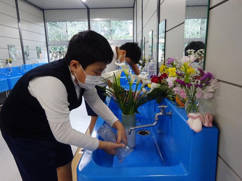 花一輪に心配りのできる子どもたちのおかげで、校長室はいつも華やかです。