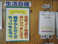 各教室には、6月の生活目標や係活動の目標とチェックカードが掲示してあります。