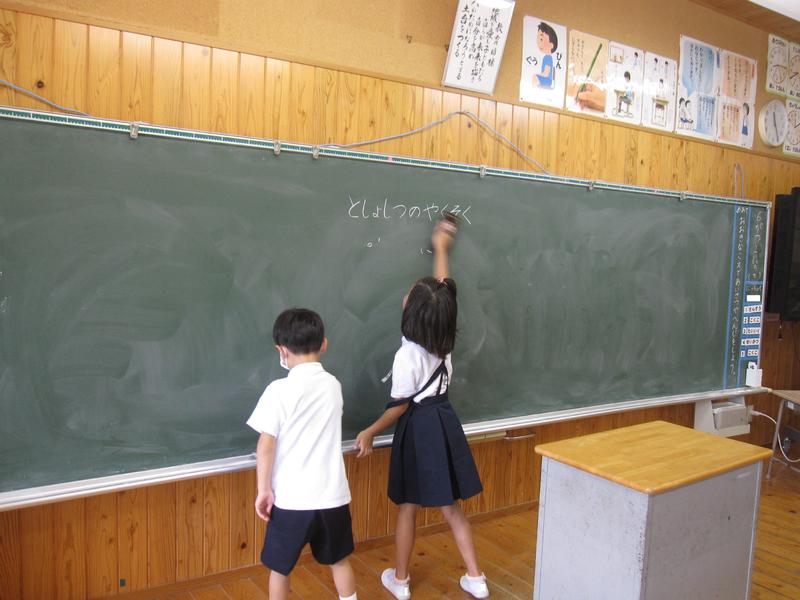 黒板係 ・・・ 学習後に黒板をきれいにして、次の勉強の準備をします。