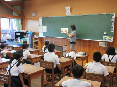写真でも分かるように、子ども達は「青い鳥」の皆さんの読み聞かせの魅力に引き込まれ、集中してお話を聞く姿が見られました。低学年では、自然に歓声や驚きの声が出てくる程でした。改めて、読み聞かせの素晴らしさを感じた一時でした。各学年の様子を紹介します。
