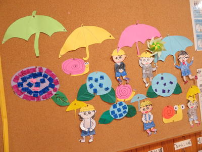 本日の委員会活動で、掲示委員会の児童が作成したアジサイやカタツムリなどを校内に掲示しました。