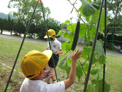 自分たちで育てたキュウリの味は格別でしょうね。