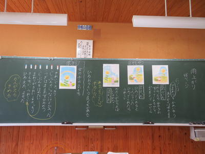 1年1組では、梅雨の時期に合わせて、学活で「雨の日の過ごし方」について話し合いました。子どもたちは「教室で静かにできる遊び」を考えて発表しました。雨の日だけでなく、外で遊べない日の過ごし方にも通じることを確かめ合った話し合いでした。