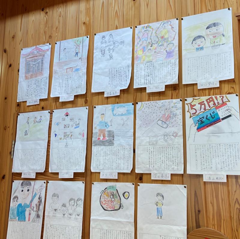 新しい気持ちでスタートした3学期。今日は朝からプレハブ校舎内の「年賀状」に気付いた子どもが「みんなを笑顔にできるように考えて行動して、いろいろなことをがんばっていきたい」と話しに来てくれました。