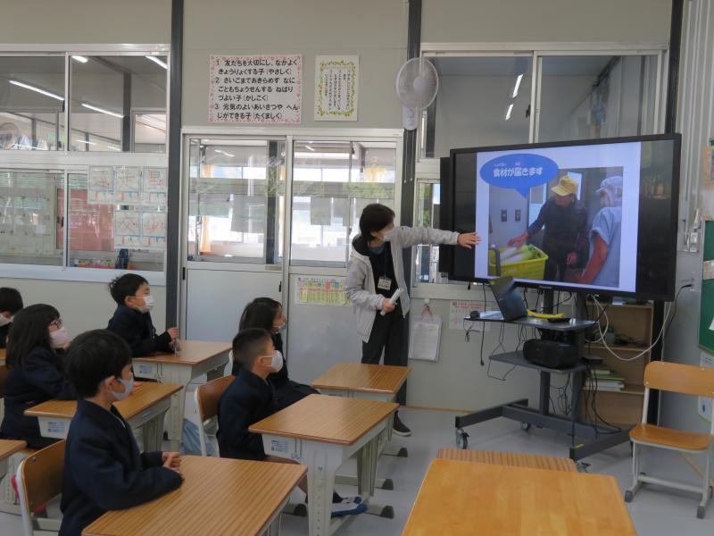 その後、栄養士の先生から電子黒板を使ってわかりやすく話をしてもらいました。子どもたちの疑問も解消できたようでした。