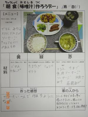 今年度2回目の「朝食(味噌汁)作ろうデー」でした。子どもたちが少しづつ自分で作れることが増えているようで嬉しく思っているところです。味噌汁はとても体に良いと言われていますのでいつでも気軽に作れるようになってくれるといいですね。