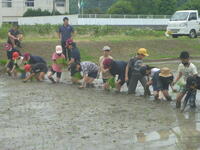 そして、5年生は午後から芦北高校の生徒と田植え体験。