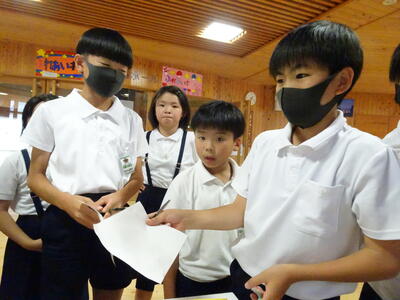 子ども達は、普段は行くことが少ない棟へ行くことも楽しかったようで、笑顔で校内を歩く姿が見られました。また、高学年と低学年は同じ問題にしていたため、低学年と一緒に問題を解いたり、迷子になっている低学年を連れて一緒に回ったり、頼もしい高学年の姿も見られ、温かい気持ちになりました。