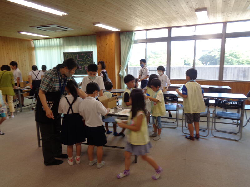 5年生、特別活動室、チャリティーバザーでの様子です。