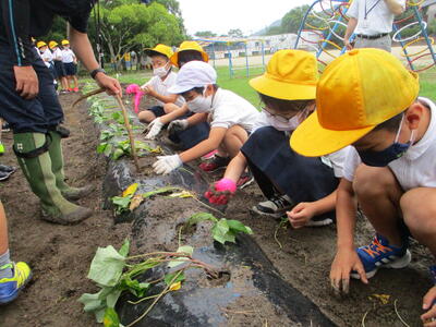 JA芦北の方に来ていただき、今年もサツマイモの苗植えを行いました。