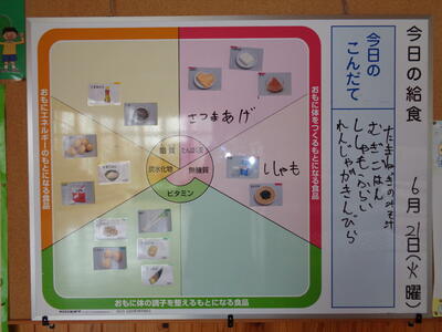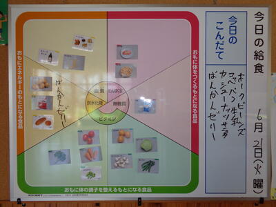上の献立表の日付が昨日のままでした。本日は、6月22日(水曜日)です。