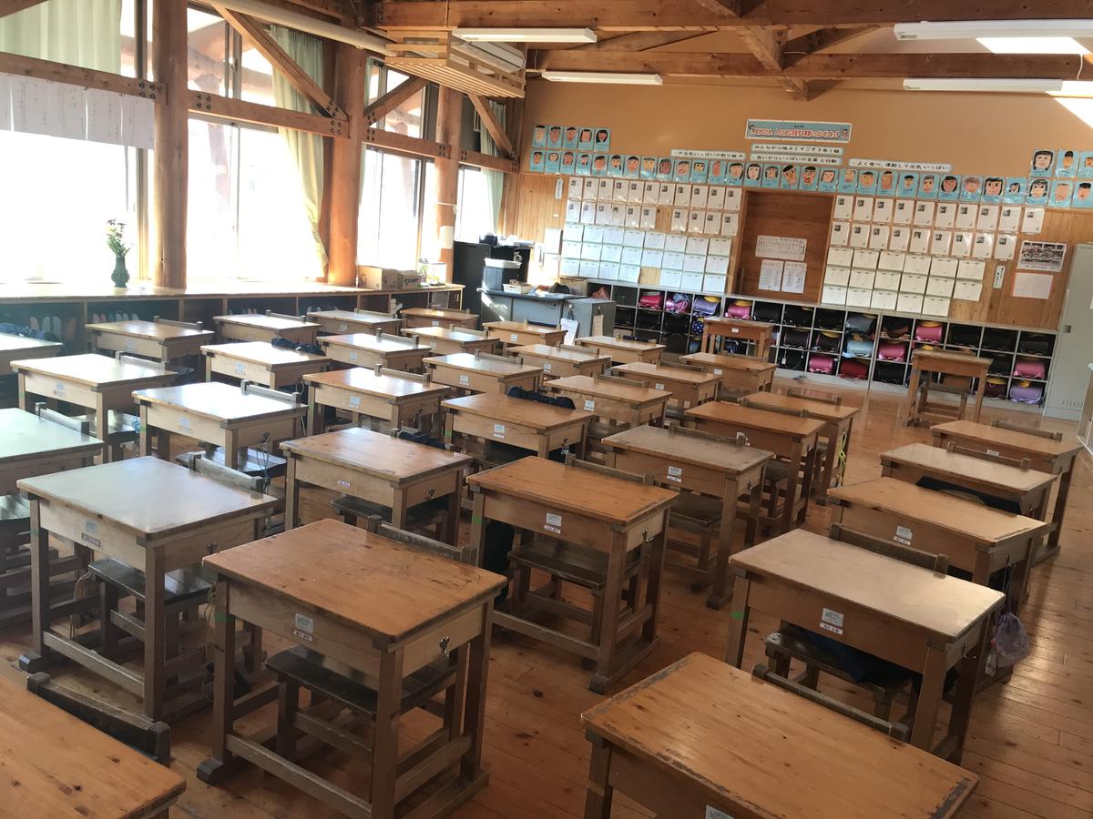 体育の時間、しろやまスカイドームに移動したあとの3年生教室の様子です。