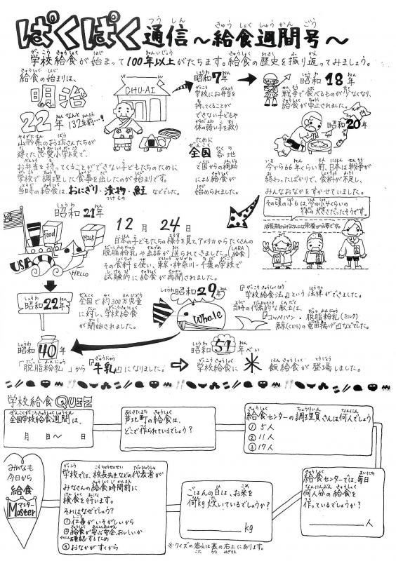今日の5時間目、3年生では給食週間に伴う学習をしていました。