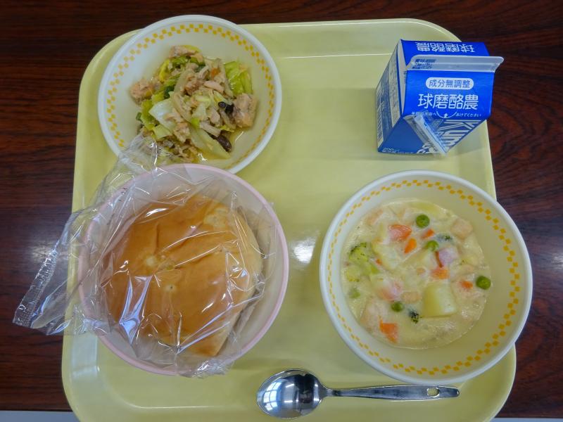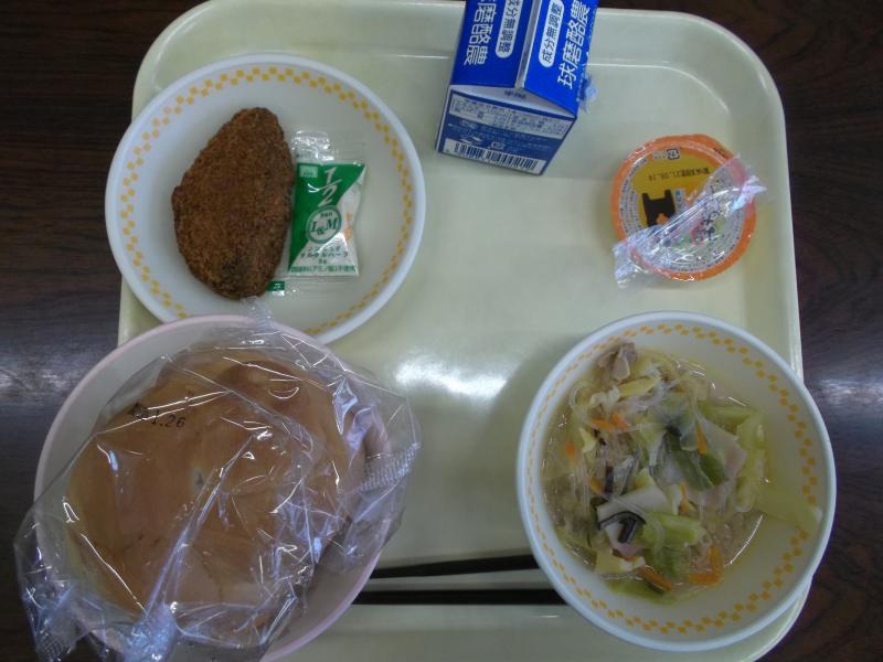 今日の給食では、タイピーエン、熊本県産ミカンゼリー、天草で獲れたぶり、ひのくにパン、球磨らくのう牛乳でした。