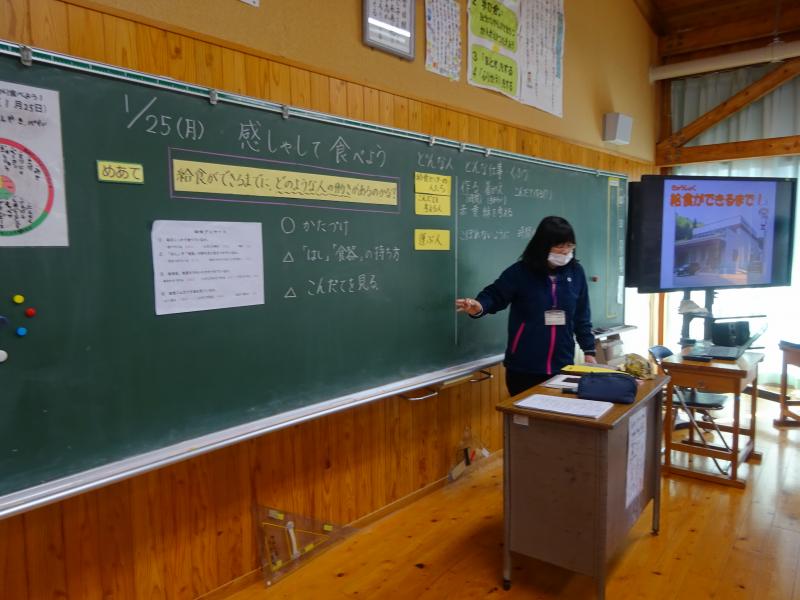 その後、栄養士の先生から電子黒板を使ってわかりやすく話をしてもらいました。子どもたちの疑問も解消できたようでした。