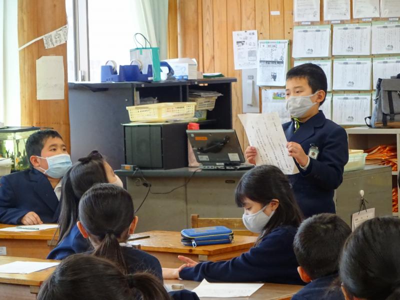 まとめでは、「給食ができるまでに、いろいろな人が関係しているんだなと思いました。やっぱり、『ありがとうございます』と言うことが一番大切ですね。これからは、『動物(生き物)たちがいるからこそ、僕たちは生きている』という気持ちで感しゃして食べようと思います」という意見がありました。