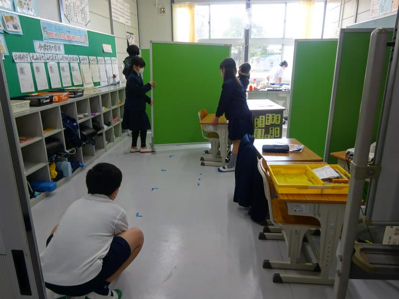 仮設のプレハブ校舎での生活を始めて3カ月余りが過ぎましたが、子どもたちは「校舎を大切にきれいに使おう」という気持ちを込めて清掃活動を行っています。