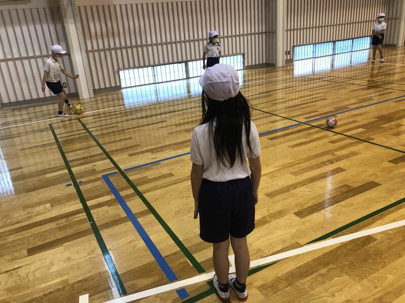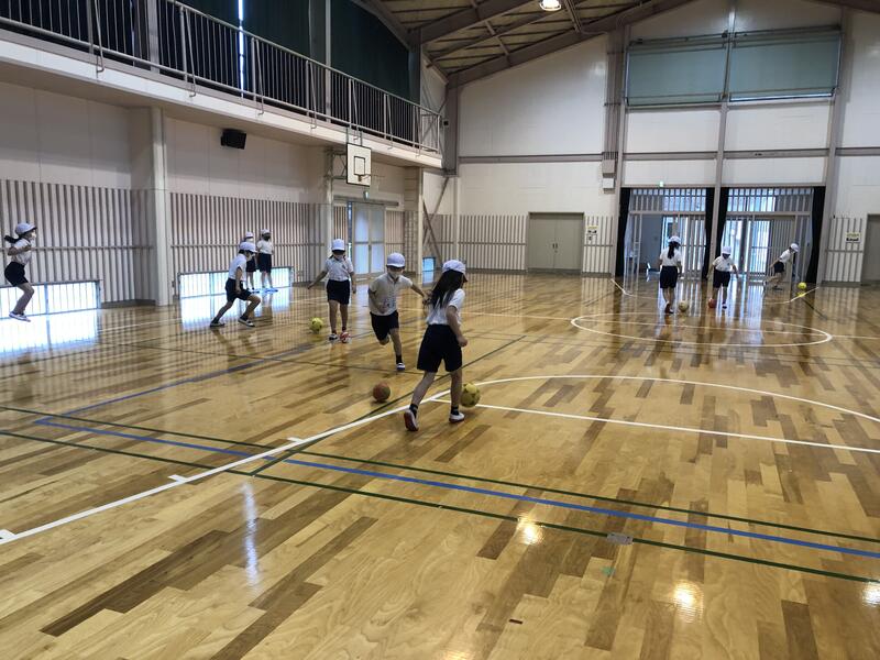 ドリブルをしてボールを止める練習では、思い思いに体をつかい行っていました。
