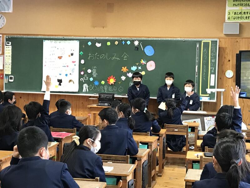 4年生での学校生活、残り2日間となりました。今日は、楽しみにしていた「おたのしみ会」を開きました。