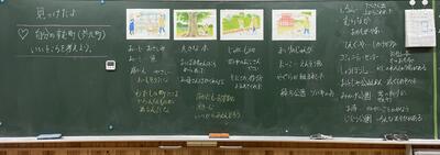 道徳の時間に、自分の町のいいところについて考えました。2年生は、生活の時間にも佐敷校区の町探検に行きました。