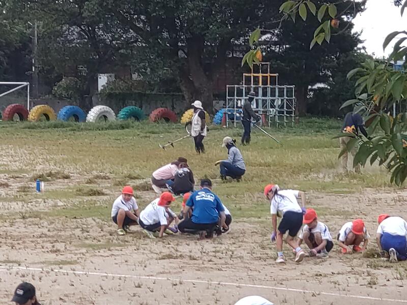 18日(日)は朝早くからたくさんの保護者の皆様にご協力いただき、愛校作業(除草作業)を行いました。前日の中学校の体育大会が順延となり、引き続き天候を心配しましたが、予定どおり実施することができ本当に感謝しております。グラウンド及びグラウンド周辺、プール周辺、南門周辺を中心に作業をしていただきましたが、職員だけでは手が回らずにいたところがきれいになりました!今週は運動会前のラストスパートの週。整備された環境のお陰で、子供たちの気持ちにも更にエンジンがかかったように思います。また、30日(金)のプール掃除もお世話になります。