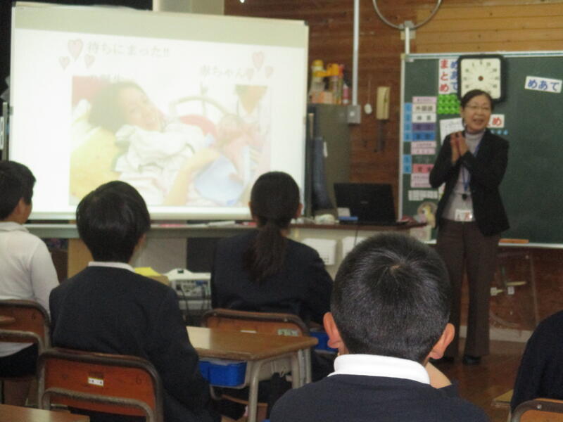 熊本県看護協会から派遣された講師の方が、小中学生向けにお話をしてくださる事業があり、今回本校の4年生が本事業を活用しました。テーマは「みんなで話そう-命の大切さ・こころと体の話」というものです。1月13日(火)の3時間目、協会から、熊本保健科学大学の原田先生においでいただきました。思春期の体と心の変化、第二次性徴には個人差があることなど、様々なことを教えていただきました。また、子供たちは赤ちゃん人形を実際に抱っこして「命の重さ」を感じていました。子供たち一人ひとりが大切でかけがえのない存在。そのことも、これからの学習で感じてほしいと思います。