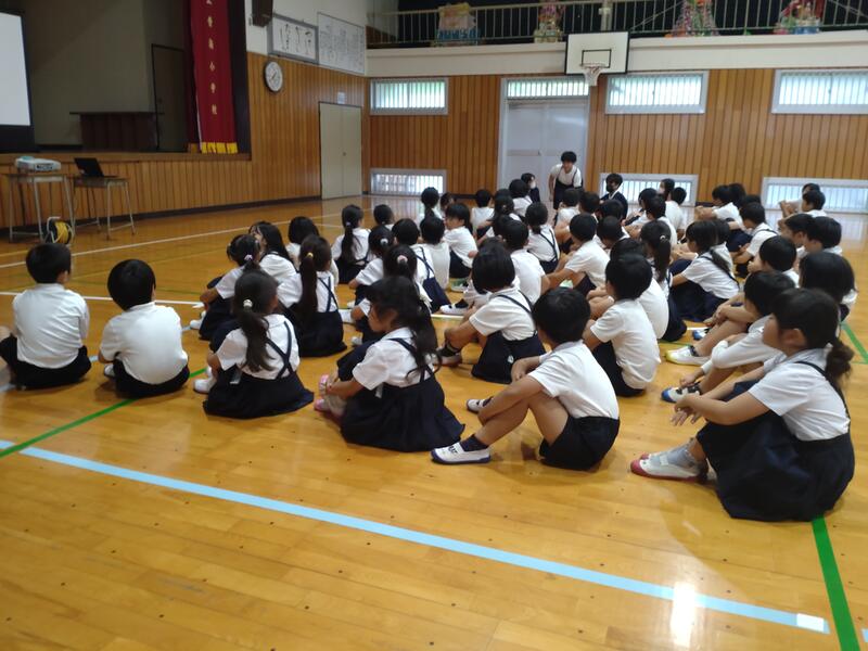 5年生は、10月23・24日(木・金)の2日間、豊野少年自然の家で集団宿泊教室を行いました。毎年三角小学校の子供たちと合同で行い交流を深めるのですが、その中で自己紹介や学校紹介をする時間を設けます。私が2日目にしか参加できなかったため、22日(水)の昼休みに、リハーサルがてら見せてもらえることになりました。せっかくだから・・・ということで他の学年の児童や先生方にも呼びかけたところ、たくさんの人が体育館に集まってくれました!クイズ形式で学校紹介をしていきましたが、どの質問も子供たち自ら一生懸命考えたものだと担任の佐田先生から聞きました。とてもよく練られた内容で、楽しかったです。単なるリハーサルではなく、図らずも、全校児童を巻き込んだプチ・イベントになりました。たいへんよい時間を過ごしました。ありがとう5年生!