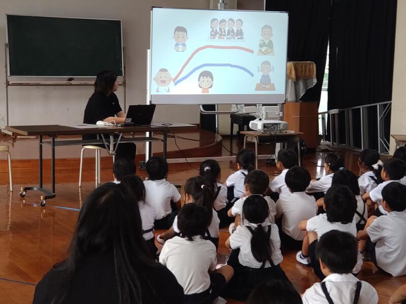 9月1日(月)の業間の時間、PTA母親委員さんによる読み聞かせが、低学年・中学年を対象に実施されました。まだまだ暑い日が続く中、委員の皆様には本当にお世話になりました。前期後半が始まってまだ二日目でしたが、子供たちの目はきらきらと輝いていました。読んでいただいた本は、「もったいない ばあさん」「なぞなぞで おばけやしきたんけん」など、計4冊。プロジェクターなどを使って、子供たちに見えるように工夫していただきました。次の会も楽しみにしています!
