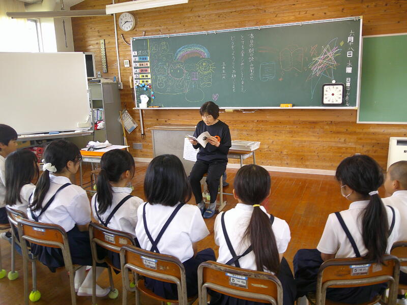 11月6日(木)は、読み聞かせの日。いつもお世話になっている「みすみ絵本サークル」の皆様に来ていただきました。今回読んでいただいたのは、1年「かちかちやま」、2年「かにむかし」、3年「アリババと40人のとうぞく」、4年「うらしまたろう」、5年「チリンのすず」「かたあしのひよこ」「世界みんわ絵本<スペイン>」、6年「でんでんむしのかなしみ」「字のないはがき」。中には私たちになじみ深いものもあります。(「青海小の子供たちは聴く姿勢がすばらしい」と今回も褒めていただきました。)ぜひ、ご家庭でもどんなお話だったかをお聞きになってみてください。会話が広がると思います。サークルの皆様、今回もすてきな読みきかせを誠にありがとうございました。