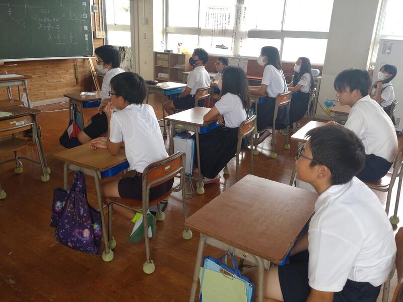 あっという間の2日間でしたが、子供たちに懐かれ、慕われ、思い出深い時間になったのではないでしょうか。今回は、生徒という立場ではなく、「先生」という立場で学校の諸活動に携わった3人の中学生の皆さん。2日目は、1~3年の学級に入ってもらいましたが、初日と比べて表情も心なしか余裕を感じました。最後に少し感想を聞いてみました。「先生という立場になって、これまではわからなかったことにたくさん気づくことができた。大変だったけど学びが多かった。」「先生方からたくさん声をかけてもらってうれしかった。コミュニケーションの大切さがわかった」「疲れたけど充実していた」など、たくさん話してくれました。これから先、様々なことに悩んでも、自分の納得のいく進路選択ができるよう、青海小学校みんなで応援しています。二日間お疲れ様でした。そしてありがとう!!