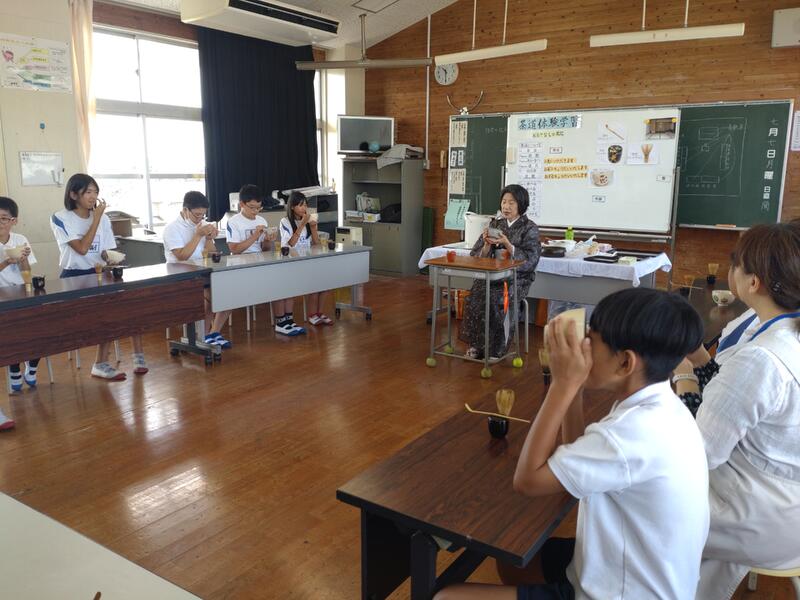 毎年6年生が行っている茶道体験。講師は、元小学校長の小林不佐子先生です。6月30日(月)に打合せを行い、7日(月)が本番でした。6年総合的な学習の時間においては、日本の伝統・文化を学ぶ時間を計画の中に設定しており、この茶道教室もその一つです。また、この時間だけではなく、他の教科等との関連を図りながら実施します。当日は、小林先生に朝からたくさん準備していただきました。また、お茶の作法だけではなく、言葉の深さなども教えていただきました。「お先にいただきます」「お菓子ちょうだいいたします」など、普段の生活の中でも、相手に、より丁寧に様々なことを伝えたいときに参考になる表現についても説明していただきました。日本語は奥が深いですね。