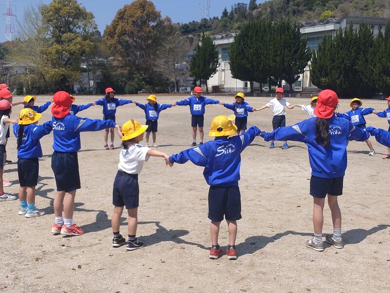 11日(金)は、新1年生を迎えての対面式及び歓迎遠足を行いました。行き先はいつもの旧郡浦小学校。まず、出発前に、体育館で対面式を行いました。1年生は前に出て自己紹介。大勢の前で、好きな食べ物やきょうだいのことについてお話しし、立派な自己紹介ができました。初めてとは思えないほどで感心しました!その後、縦割り班に分かれ、班の顔見知り会。これから一年、この班でたくさんの活動をしていきます。また、班ごとに「花いちもんめ」「だるまさんがころんだ」「ハンカチ落とし」などのゲームを夢中になって楽しむ姿が見られました。 そしていよいよ学校出発。一年生は上級生のサポートを受けながら歩き、無事に目的地に到着。そこでも、2年生から「貨物列車」、3年生から「手押し相撲」、4年生から「なべなべそこぬけ」、5年生から「あっちむいてホイ」、6年生から「おんぶ競走」の歓迎を受けたのでした。たくさんのおにいさん、おねえさんから遊んでもらった一年生は、終始ニコニコでした。1年生が現在元気で登校していることがとてもうれしいですし、上級生、特に6年生が最大限の相手意識をもってお世話をしてくれています。この点も素晴らしいです!これからもよろしくね!