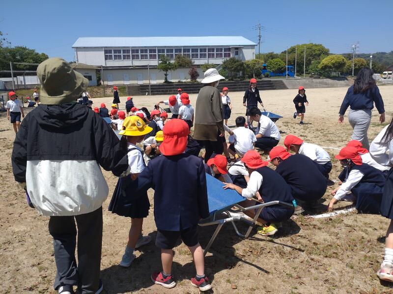 以前もお伝えしたことがありますが、掃除が終わって5時間が始まるまでの時間を、本校では「業間」の時間と設定し、短い時間ですが、様々な活動を行っています。のびっこ集会、全校体育、外掃除(縦割り班で行います)、学級タイム、学力充実タイム、そして昨年度始めた情報モラルタイムなど・・・。これからは、運動会に備えて体を動かす時間として使うことも多くなると思います。そして、最近は気温の上昇に伴い、運動場が「青々」としてきましたので、24日(木)は、外掃除として除草を全員で行いました。一回に取ることができる量は限られていますが、運動会へ向けての環境づくりに子供たちにも一役買ってもらいたいと思います。トラックをきれいにするにはもちろん大人の手が今後必要ですが、少しずつ整備を進めます。