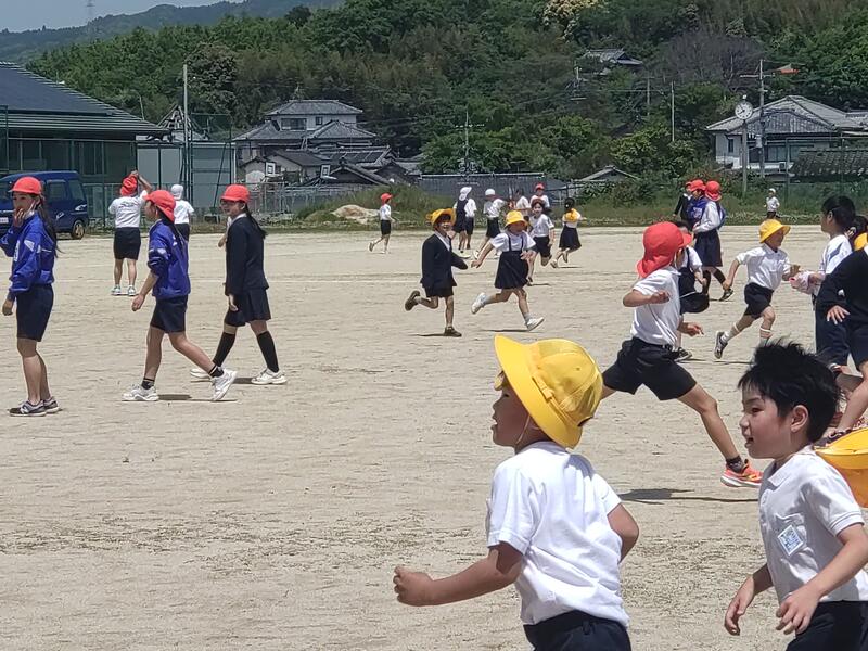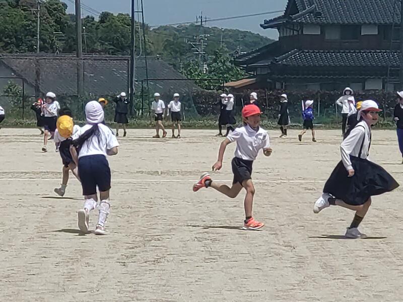 楽しみにしていたゴールデンウィークもあっという間に終わってしまいました。これからは、24日(土)の運動会へ向けた練習が一層本格化します。暑さもどんどん増すと思われますので熱中症警戒アラートと日々にらめっことなりそうです。しっかり栄養・睡眠をとって、万全の体力でこれからの練習に取り組むことができるようご家庭のご協力をお願いいたします。さて、1年生はラジオ体操を覚えなくてはなりませんが、教室では動画を見ながら確認をしています。担任の先生からは注意すべきポイントについて、実演を交えた指導が・・・。また、業間の時間には、体力づくりの一環で、「全員鬼ごっこ」。体育主任の先生の指示で、子供たちは広い運動場を縦横無尽に駆け回っています(元気です)。昨年度のスポーツテストの結果によると本校の児童は、柔軟性や敏捷性に若干課題が見られるようです。日々の遊びを通して体力も伸ばしていけたらいいですね。(SNSやゲームの時間は決まっていますか?体も動かしたいですね)
