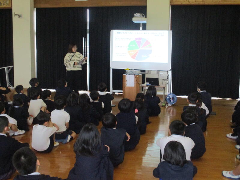 3月2日(月)の業間と5時間目の時間を使い、「学校保健委員会」を実施しました。目的は、「学校教育目標を達成するための一環として本校の健康課題を共有し、児童の健康の保持増進を図る」です。養護教諭の林田先生の指導の下、保健体育委員会が中心となって、様々な準備を行ってくれました。「いきいきウィーク」の取組から見える生活習慣の課題及び体力テストから見える課題の説明、縦割り班での「校内健康クイズラリー」など、わかりやすく、かつ、楽しく健康について考えることができました。なお、報告の中で少し気になったのは、夜10時までに就寝した子供が65%で若干数値が低いこと、メディア利用のルールが守れていない子供が30%いることです。両者は関連している内容ですが、小学生のうちはしっかり睡眠をとることが必要です。再度、ご家庭でも話題にしていただけるとありがたいです。