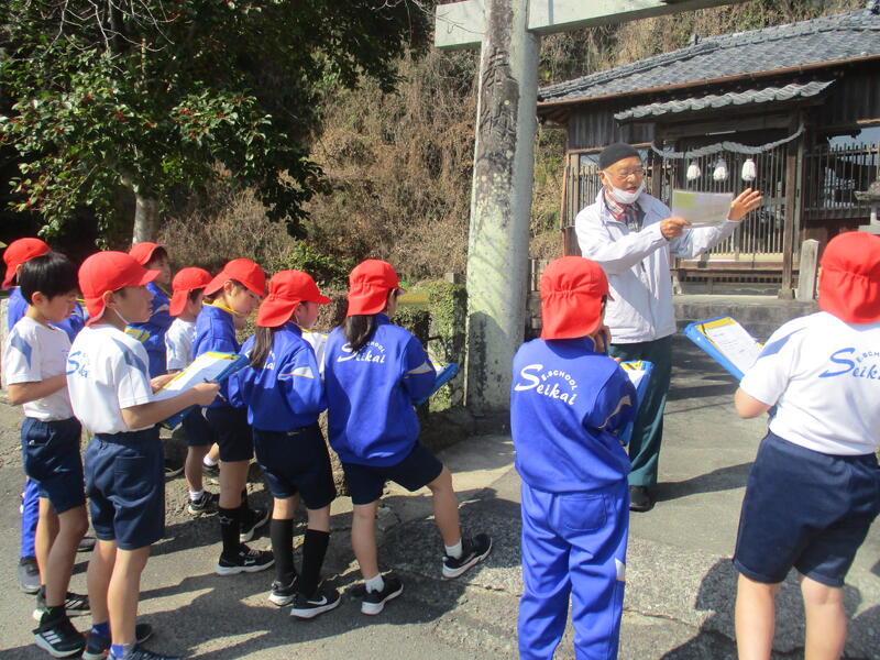 2月19日(木)の4時間目、3年生が地域のことをより深く学ぶため、学校運営協議会委員長でもあられる寺尾様のガイドにより、船津地区の探検に出かけました。私は残念ながら同行できなかったのですが、子供たちにとっては初めて知ることばかりで、とても興味深く聴いていたそうです。船津は、昔大変栄えていた地区で、様々な商店や知る人ぞ知る名所もあり、寺尾様から説明があるたび、子供たちはとても驚いていたそうです。映画館の話や、ここから船に乗って出かけていた話など、私もよく家族から聞いていました。ちなみに、坂を下ったところに古本屋さんがあったと記憶しています。よく漫画本を借りていました。懐かしいです。地域のことを知れば知るほど地元への誇りや愛着が生まれます。このようなお話が聞ける機会がどんどん貴重になっていく中、子供たちには、今回の話をぜひ覚えておいてほしいです。寺尾様にはお忙しい中大変お世話になりました。