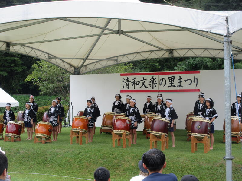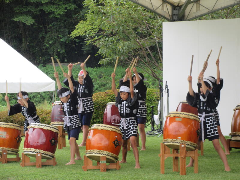 9月14日(土)、清和文楽館横の芝生広場で行われた「文楽の里祭り」で、5年生が太鼓演奏をしました。