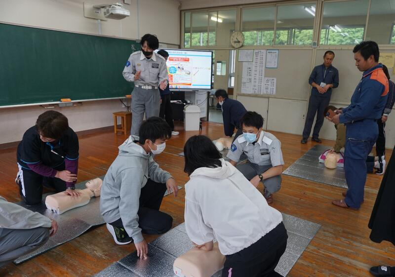 その後、講習を受け、心肺蘇生について、実際にみんなでやってみました。